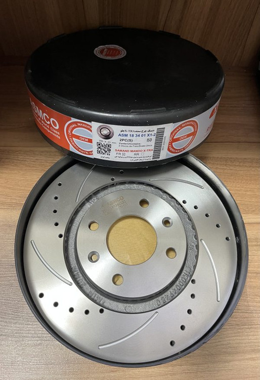 دیسک چرخ جلو سوراخ دار سمند دنا از سوی شرکت آسمکو تولید شده است. این شرکت، یک شرکت ایرانی معتبر در زمینه تولید دیسک ترمز و سایر لوازم جانبی خودروها است که از بهترین متریال ها و فلزات برای ساخت این دیسک ها استفاده می کند.